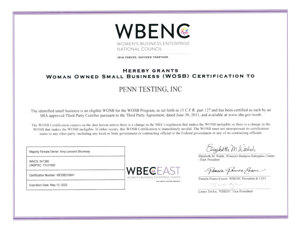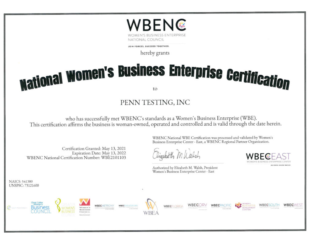 Fast prompt professional service. Will always go the extra mile to meet the customer needs and expectations. Would recommend Penn Testing to anyone needing dependable inspection services.